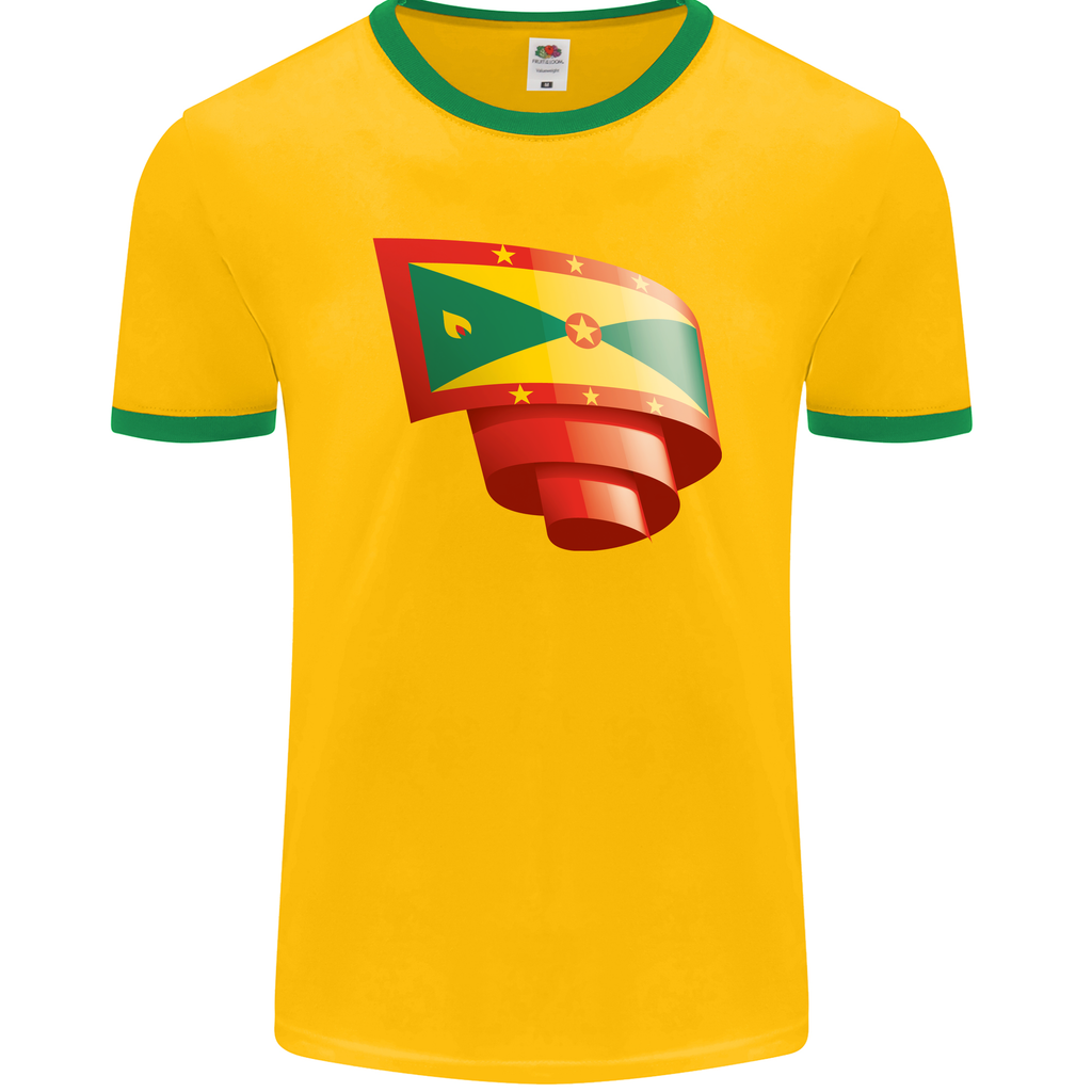 Embrace your Grenadian pride with this Curled Grenada Flag Grenadians Day Football Men's Ringer T-Shirt FotL. This stylish and sporty t-shirt is designed to celebrate Grenada with a unique twist. Crafted from high-quality materials, it offers both style and comfort for your everyday wear.