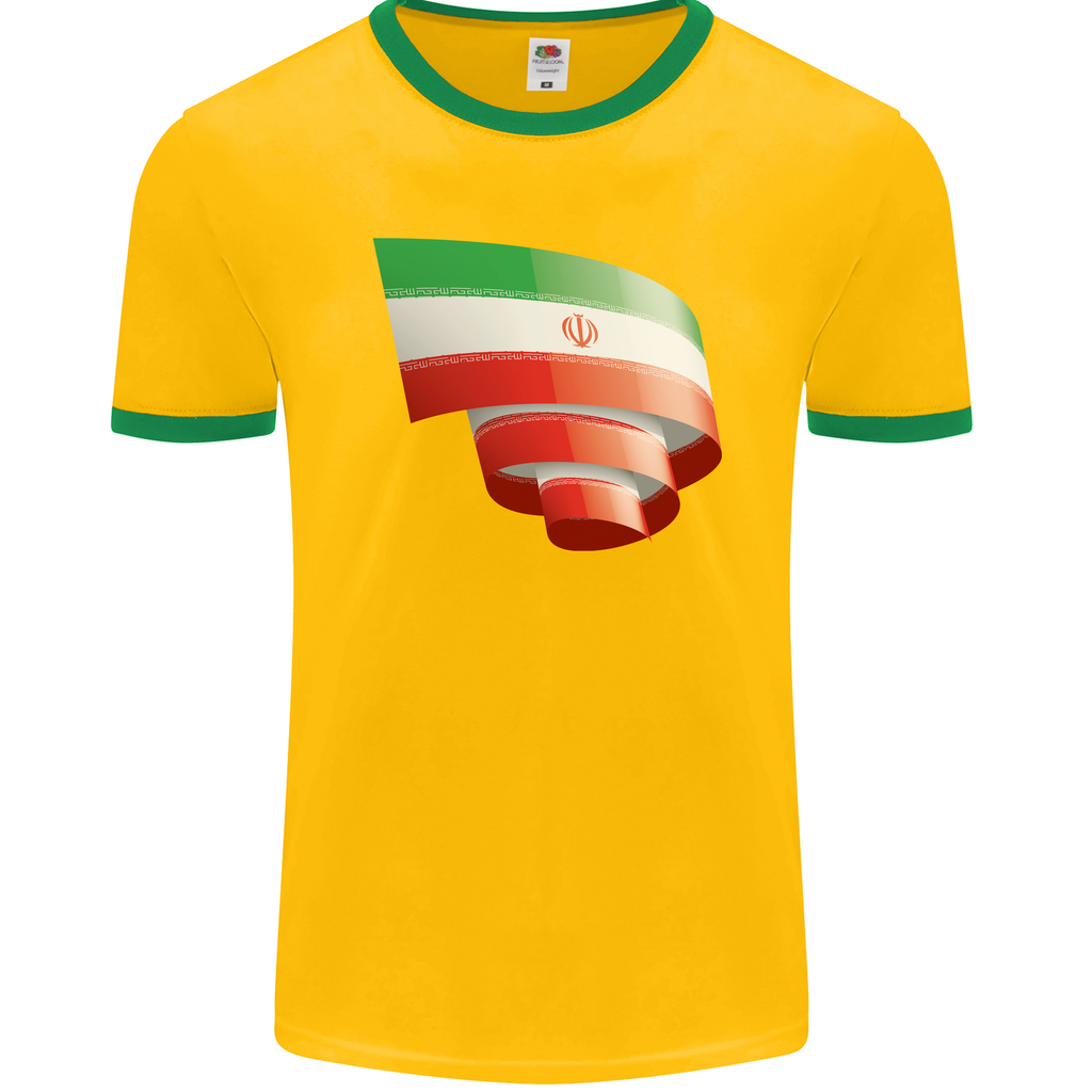 Embrace your passion for football and your love for Iran with the Curled Iran Flag Iranian Day Football Men's Ringer T-Shirt by FotL. Elevate your wardrobe with this distinctive piece that celebrates heritage, style, and the joy of the beautiful game.