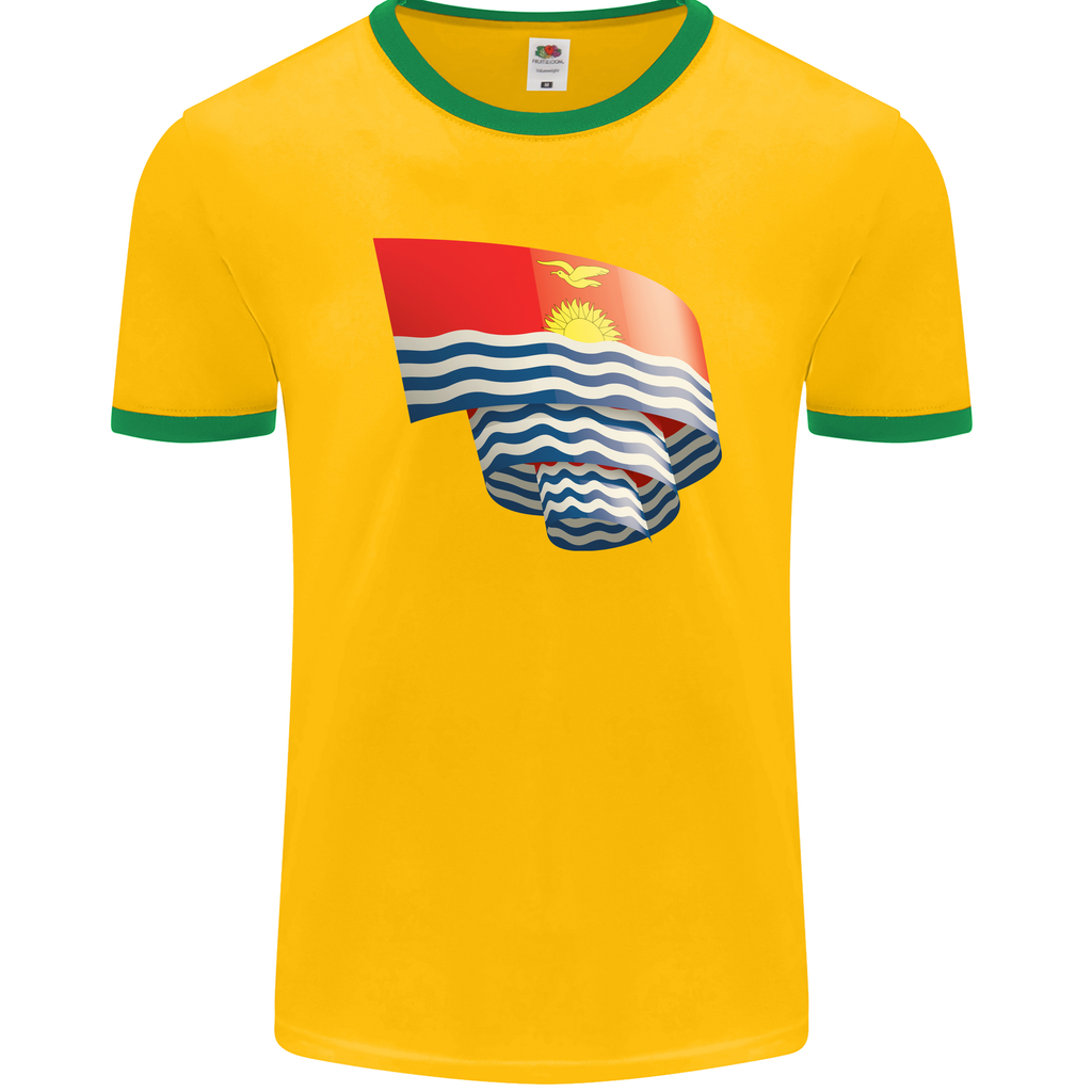 Express your individuality with the Curled Kiribati Flag Day Football Men's Ringer T-Shirt by FotL. This unique tee is the perfect blend of style and comfort, making it a must-have addition to your wardrobe.