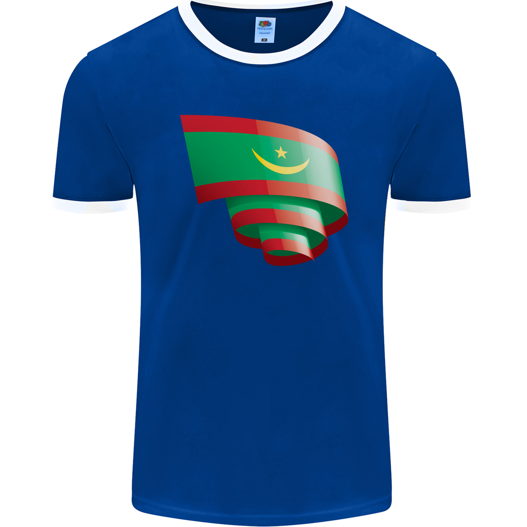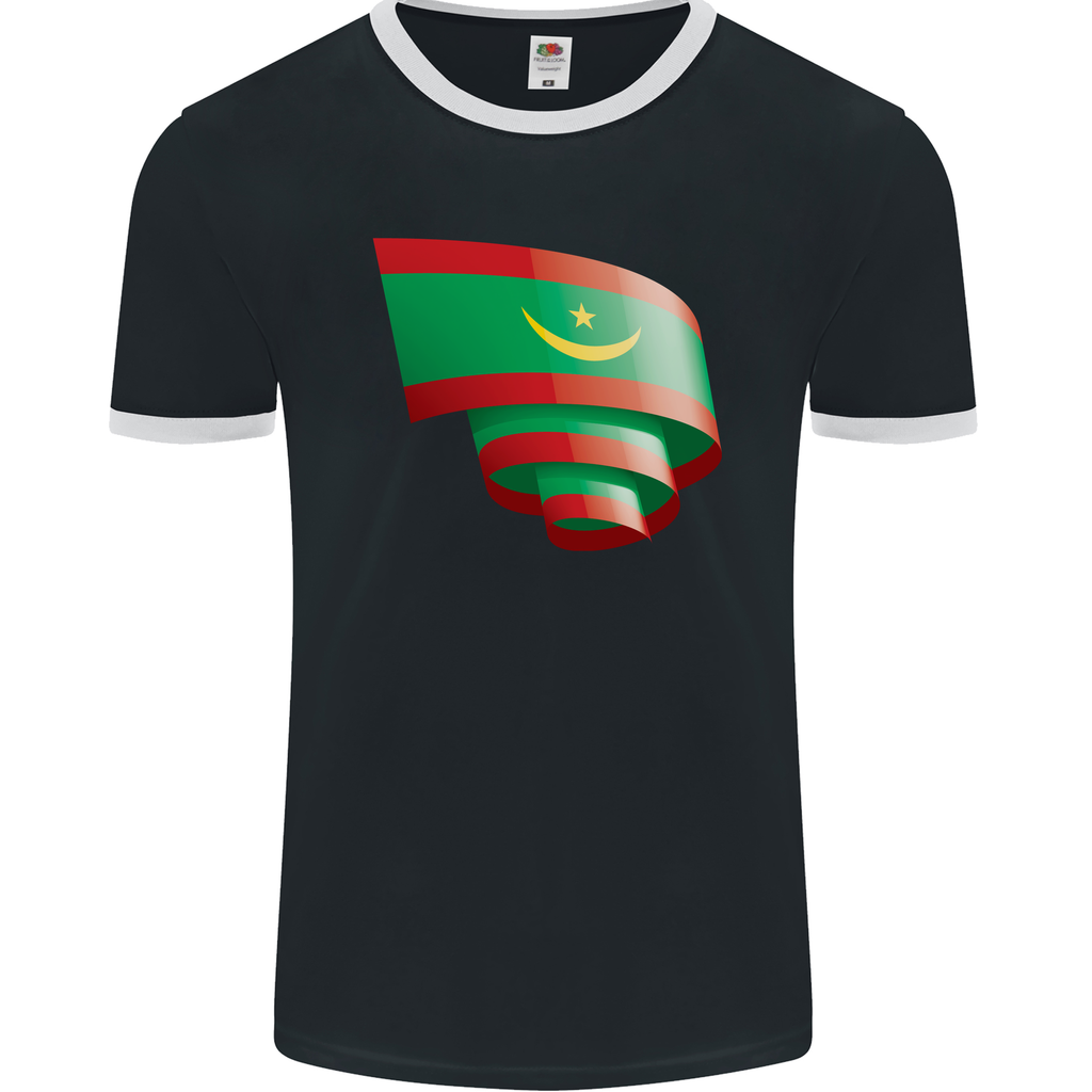 Welcome to the world of style and sport with the Curled Mauritania Flag Mauritanian Day Football Men's Ringer T-Shirt by FotL.