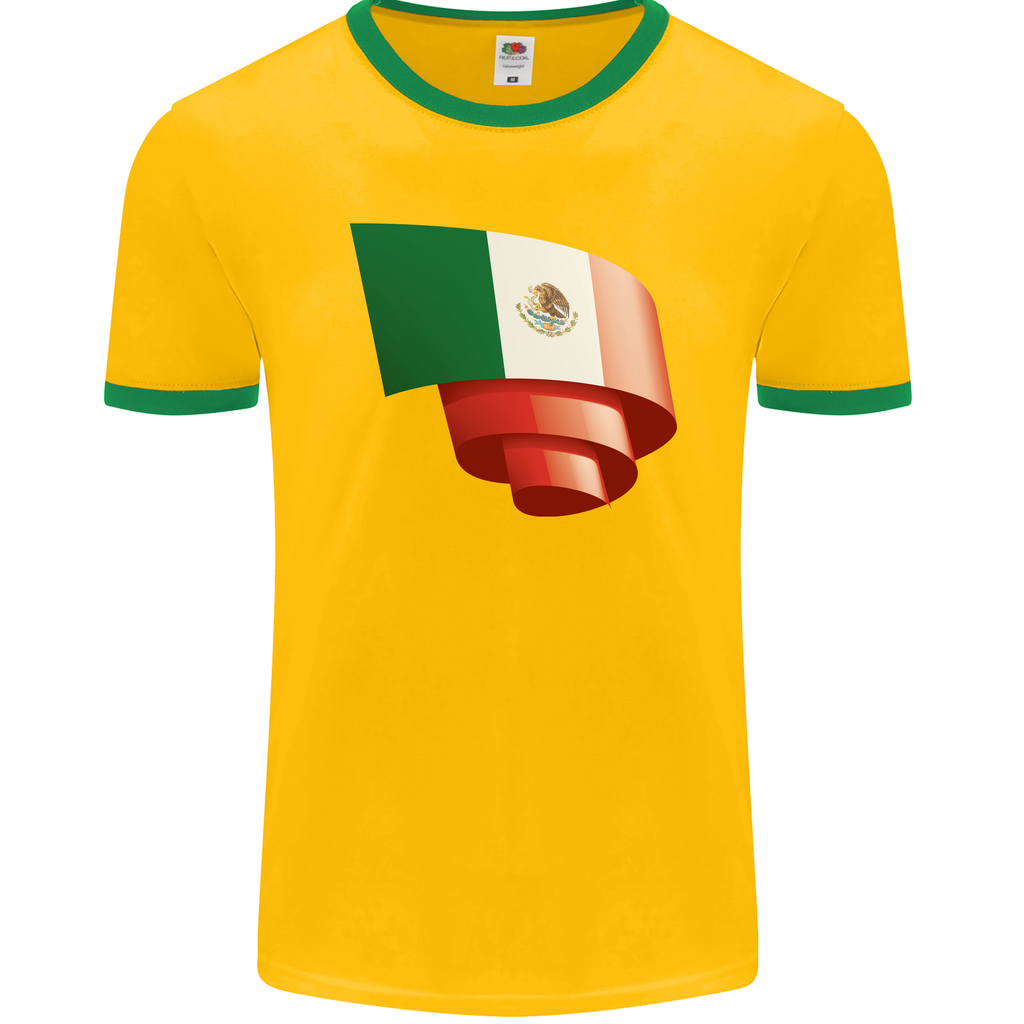 Welcome to the vibrant world of Mexican pride with our Curled Mexico Flag Mexican Day Football Men's Ringer T-Shirt by FotL. Celebrate the spirit of Mexico and the love for football with this tastefully crafted ringer tee that exudes style and patriotism.