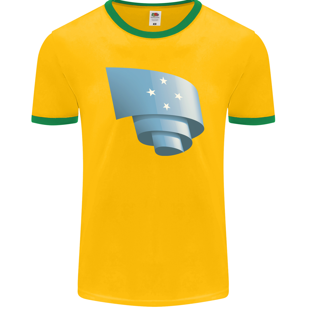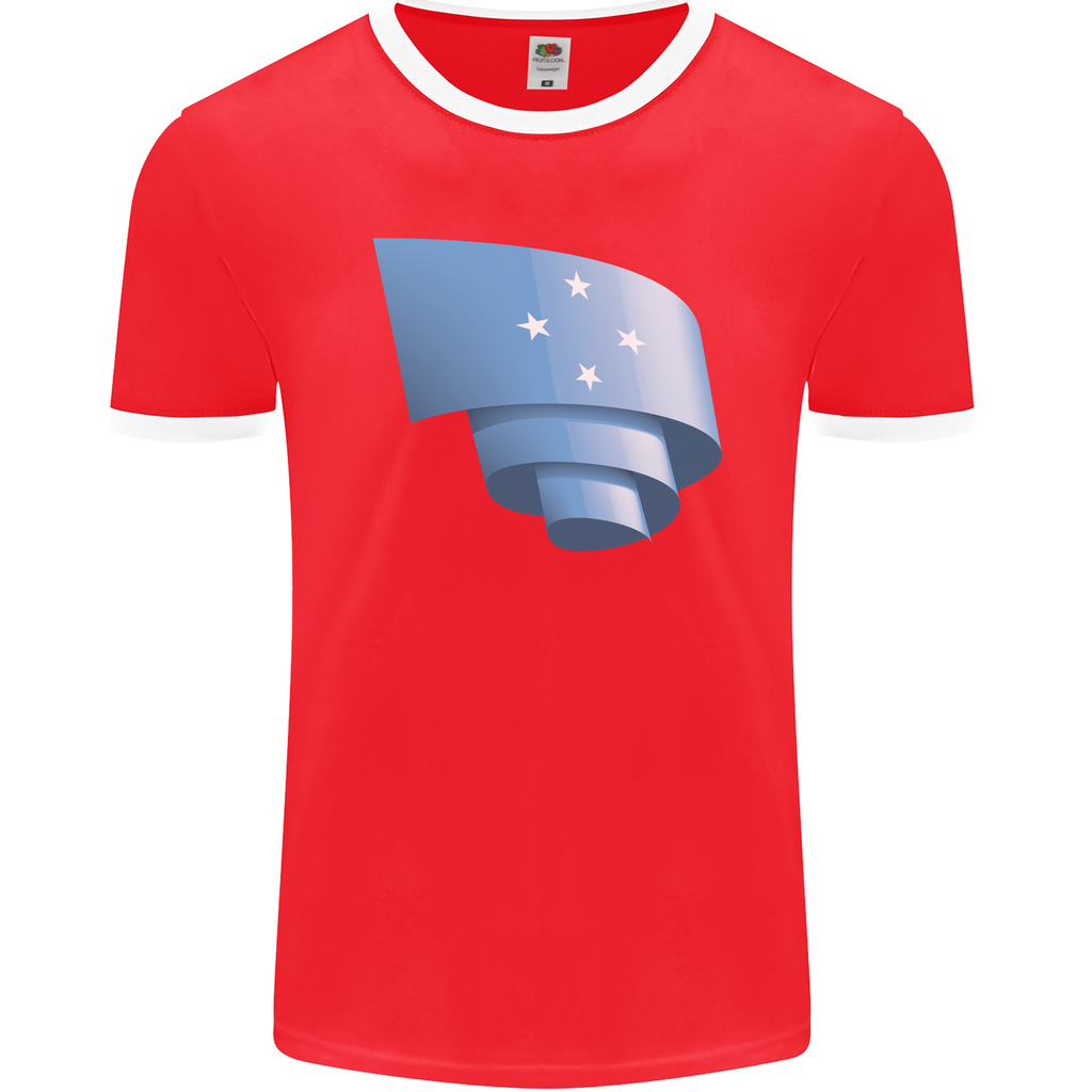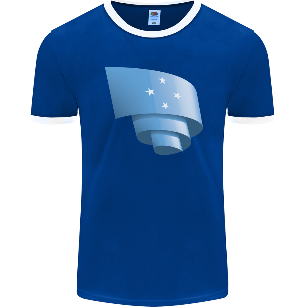 Welcome to the vibrant world of our Curled Micronesia Flag Micronesian Day Football Men's Ringer T-Shirt by FotL. Embrace your patriotism and passion for football with this eye-catching apparel.