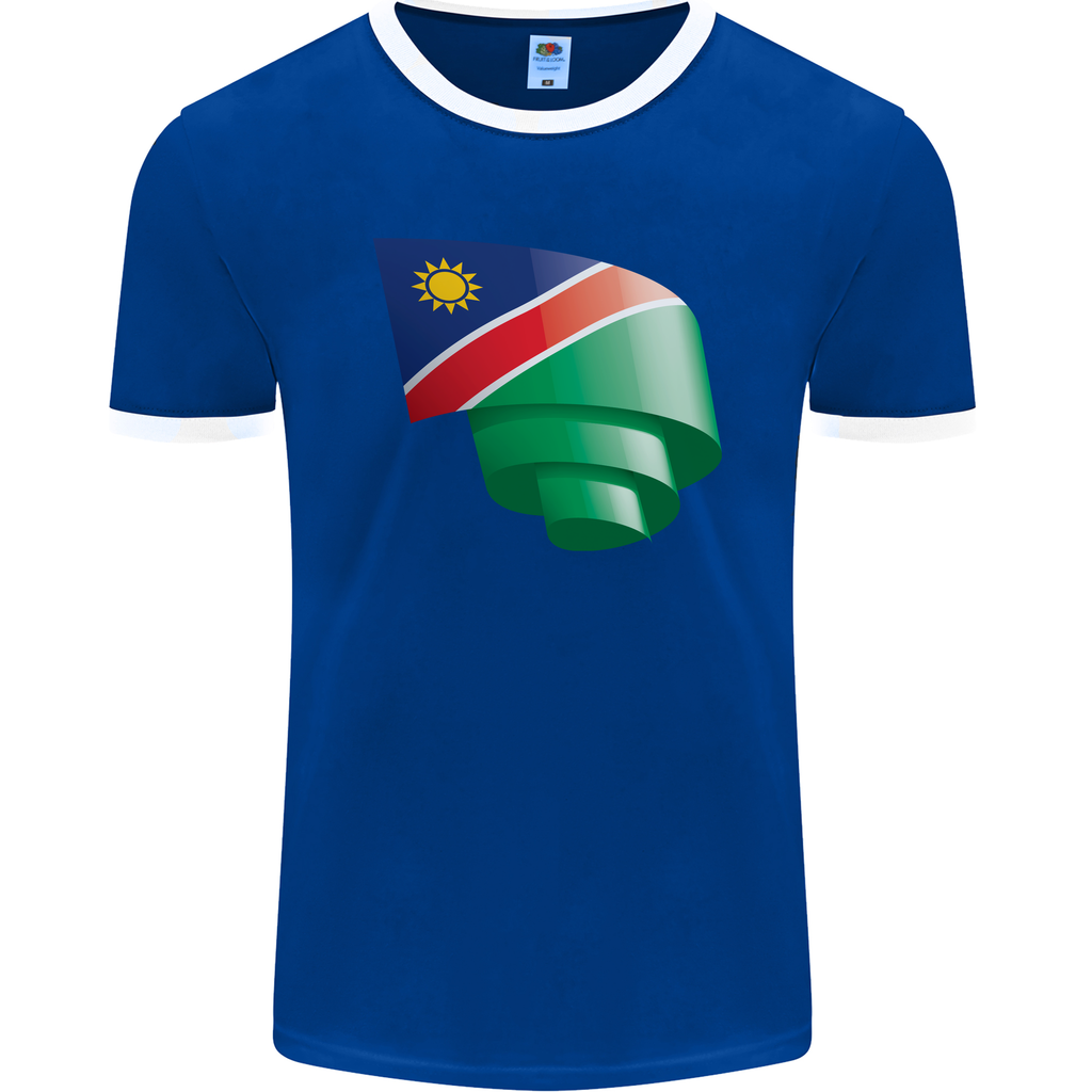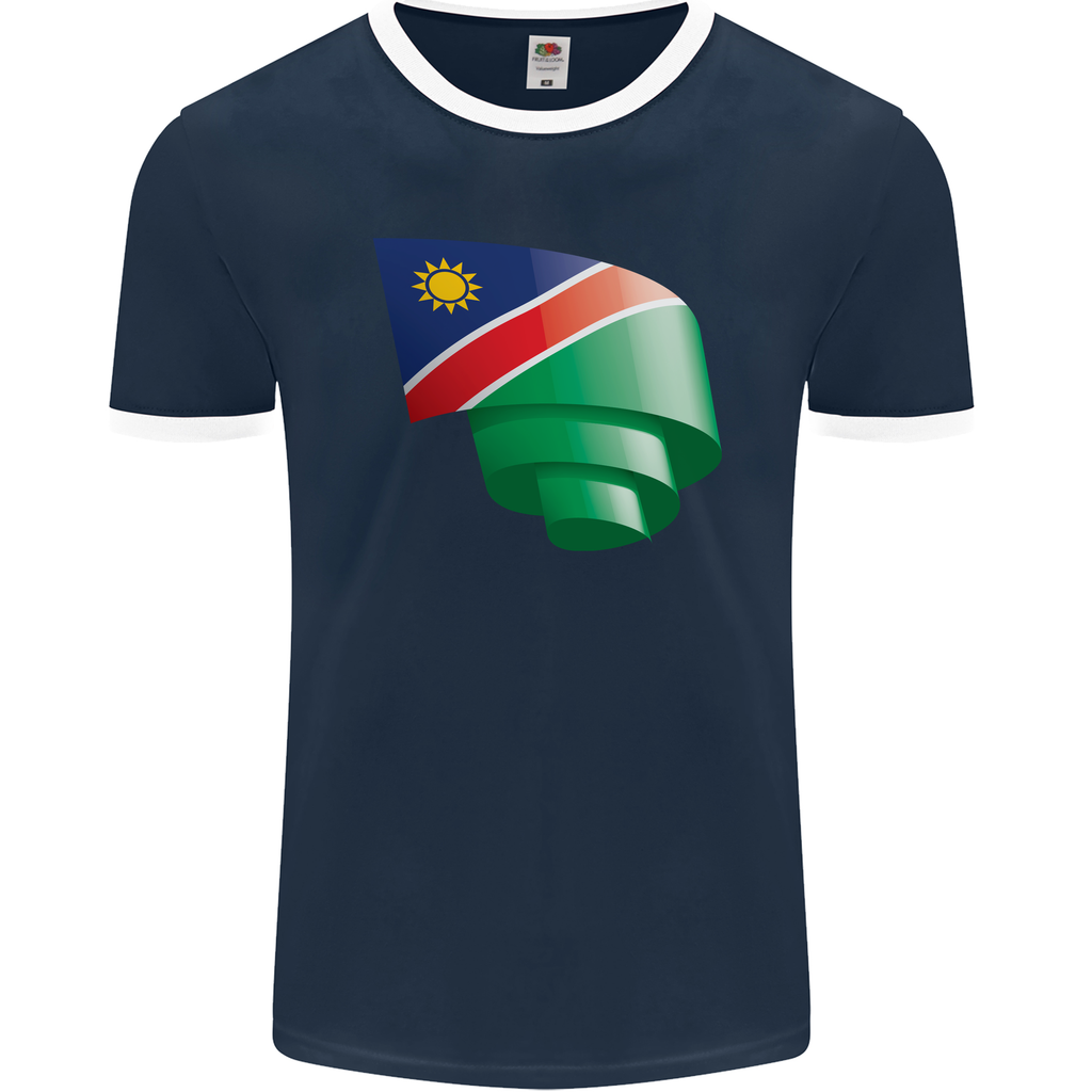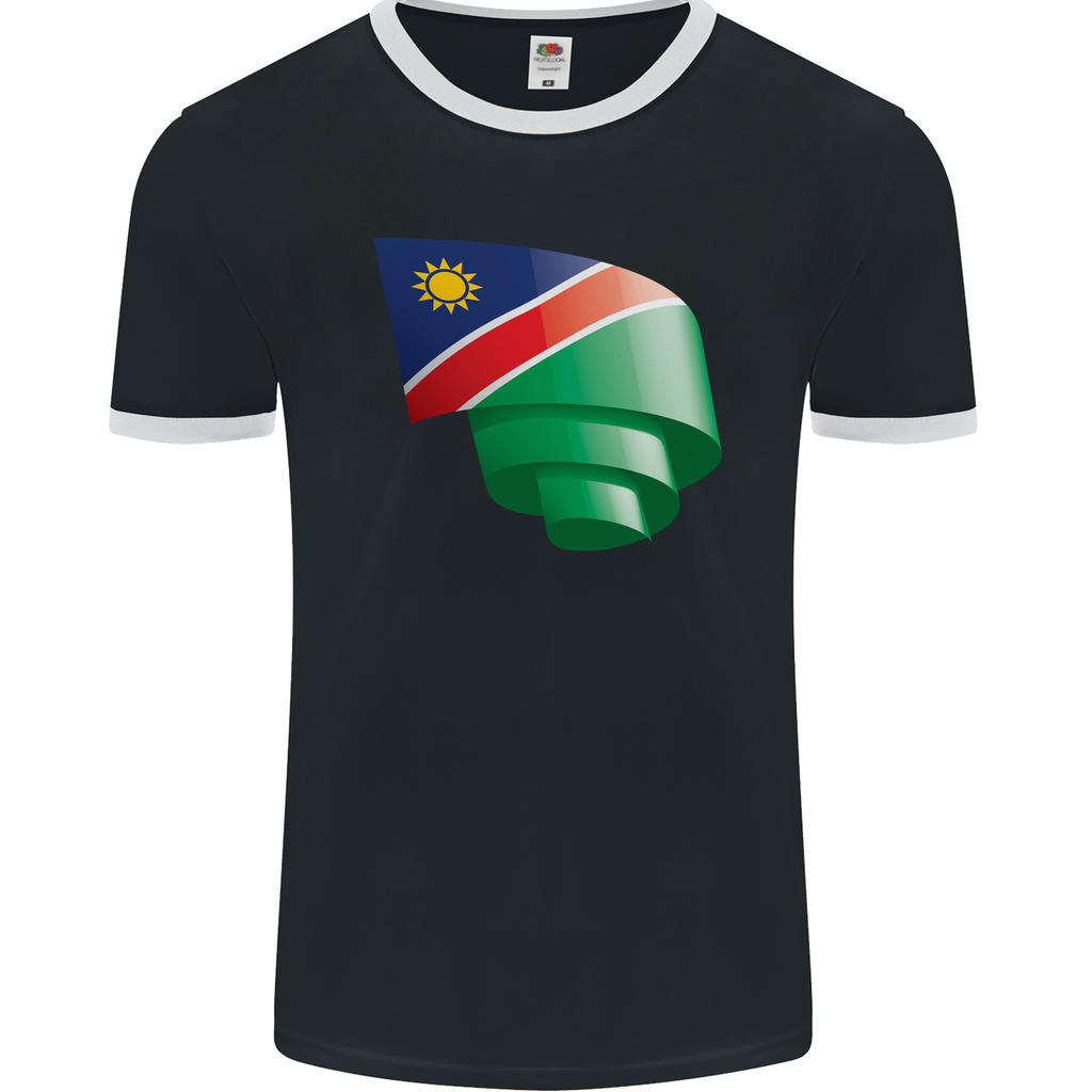 Welcome to the ultimate expression of Namibian pride and passion with the Curled Namibia Flag Namibian Day Football Men's Ringer T-Shirt FotL. Let your style speak volumes with this statement piece that celebrates your love for Namibia and football.