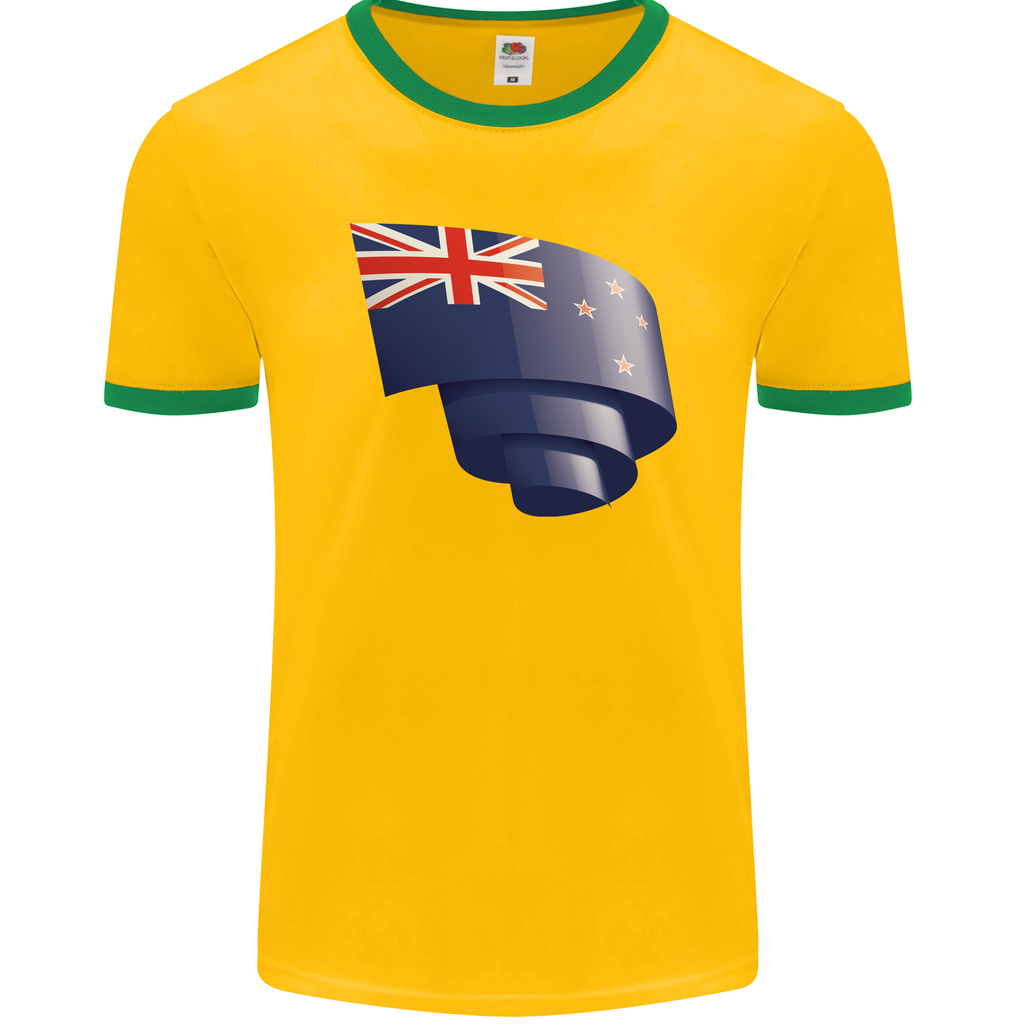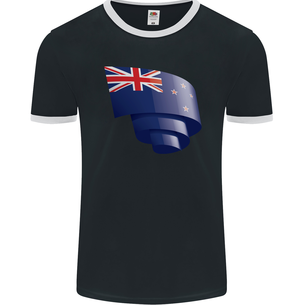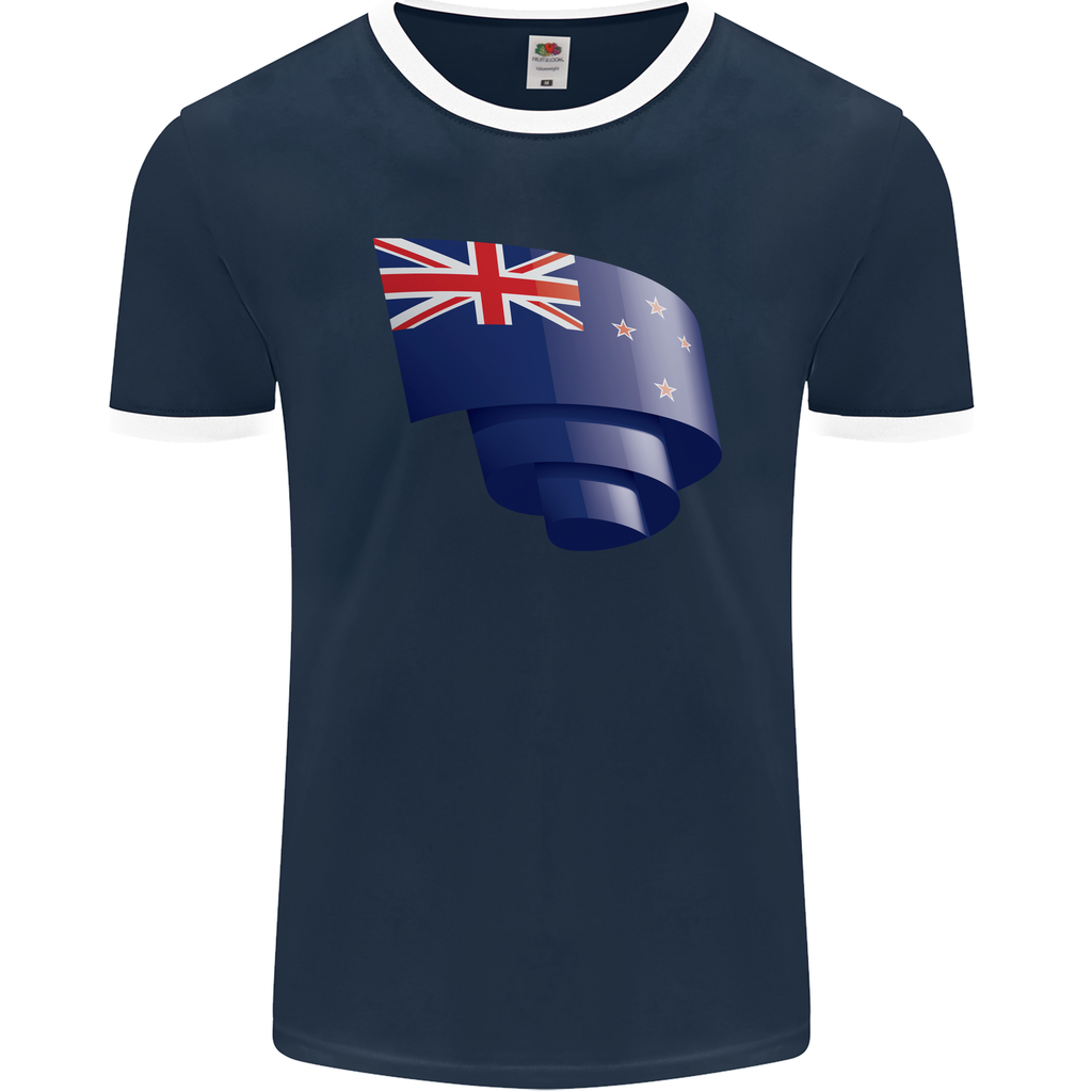 Invest in quality, express your identity, and make a statement with our Curled New Zealand Flag Zealander Kiwi Day Mens Ringer T-Shirt by FotL. Elevate your style game and let your wardrobe reflect your vibrant personality.