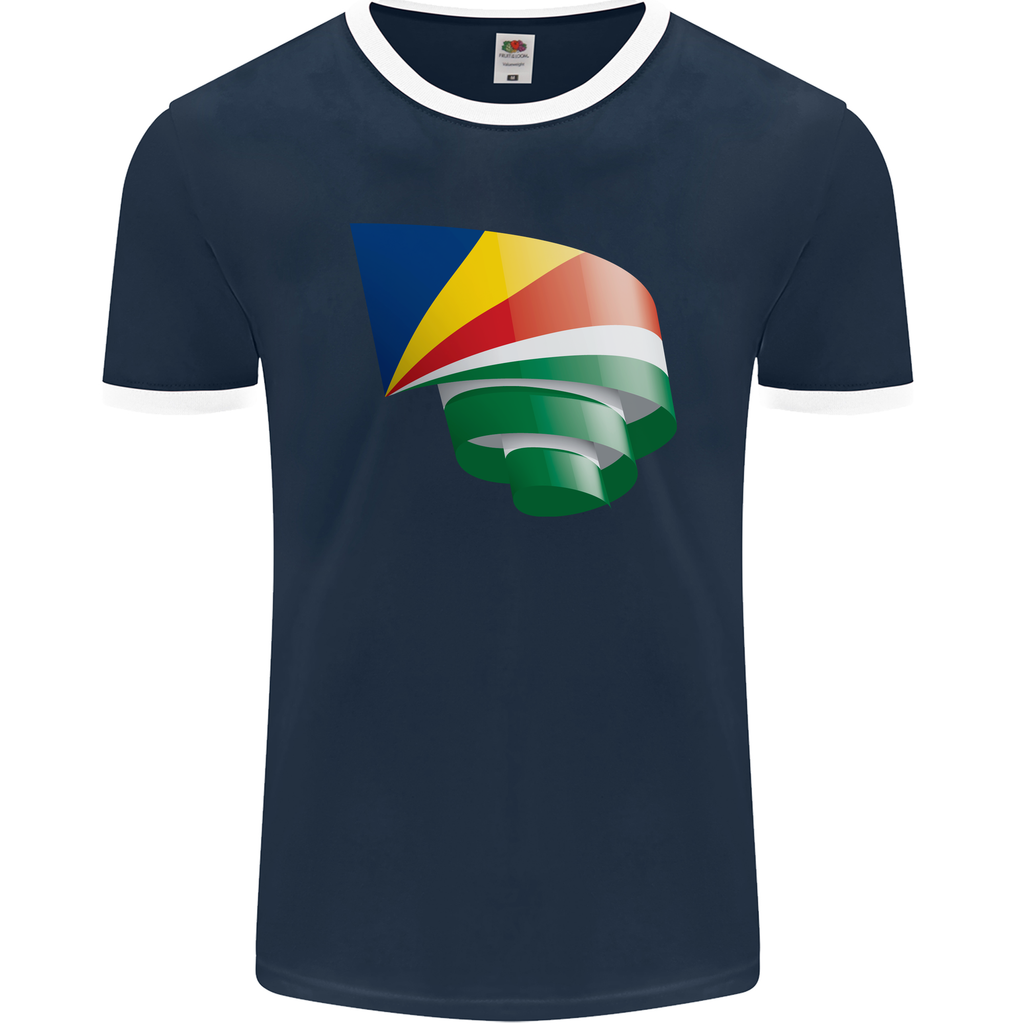 Embrace your Seychellois heritage with the Curled Seychelles Flag Seychellois Day Football Mens Ringer T-Shirt by FotL. Elevate your wardrobe with this captivating piece that combines style, comfort, and cultural pride in one seamless package.
