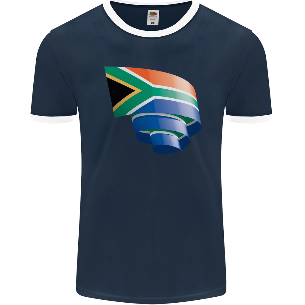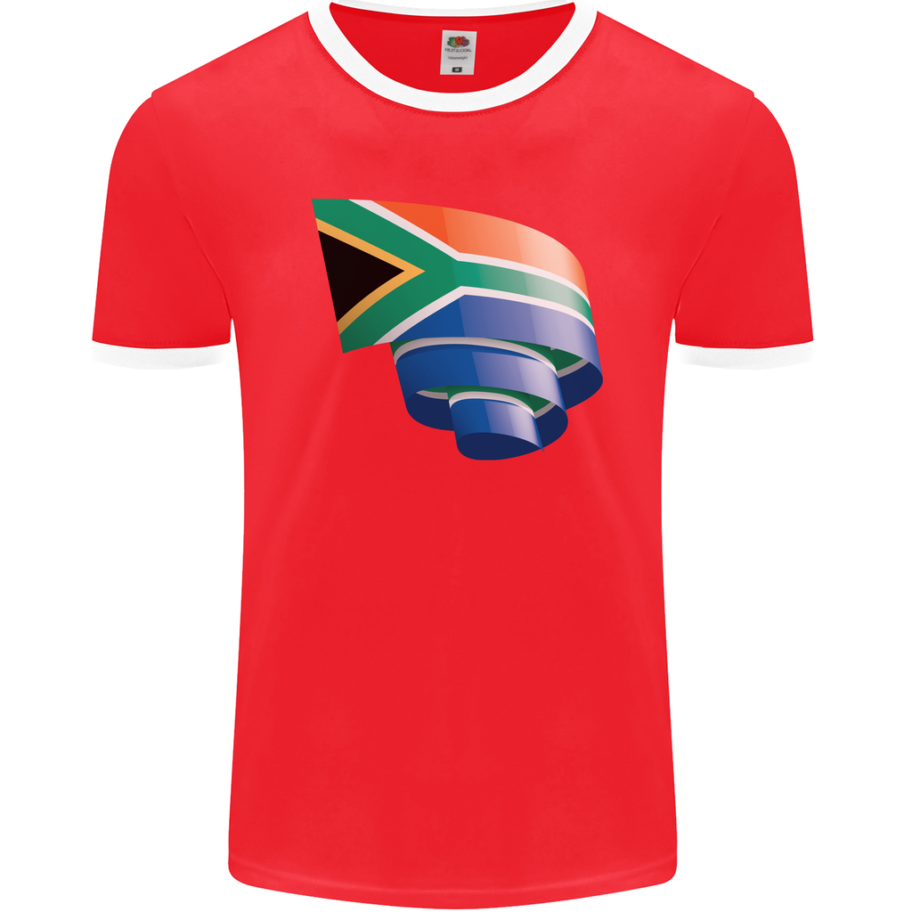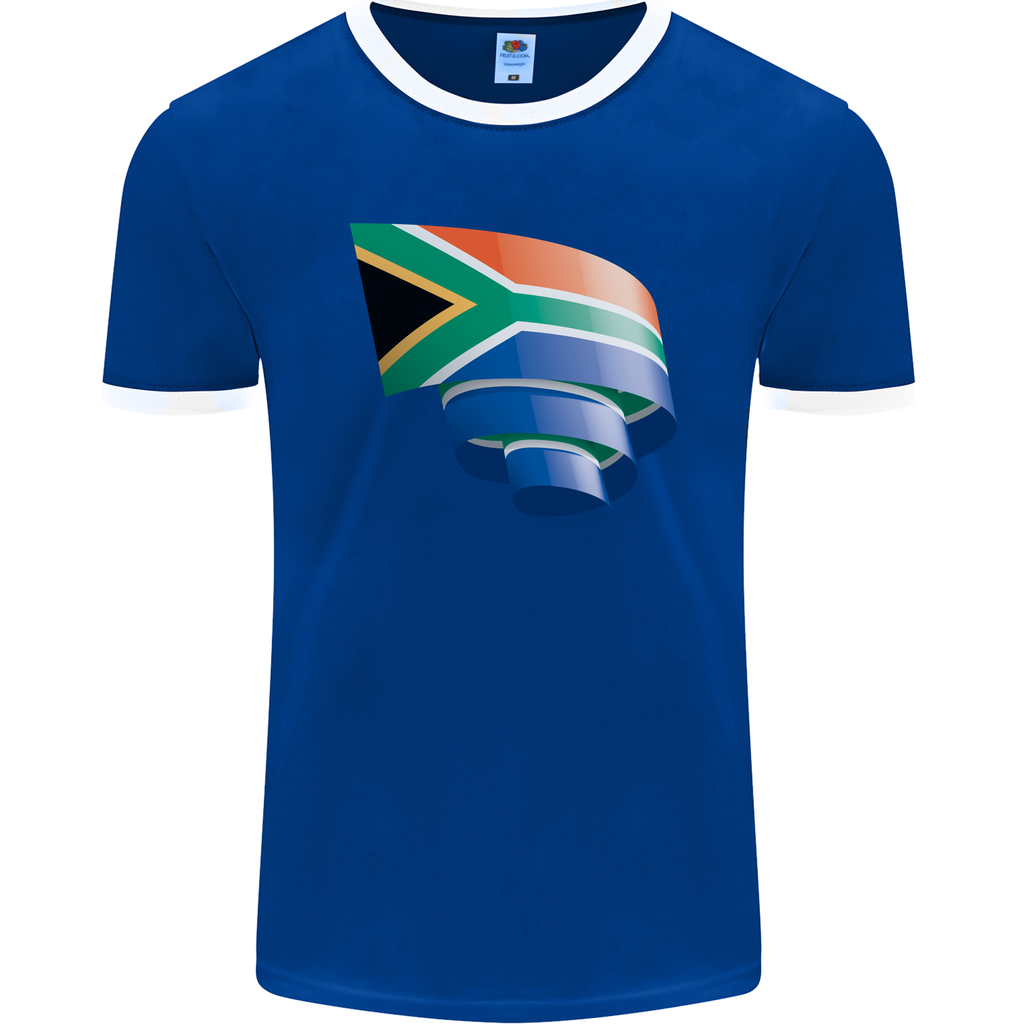 Embrace your South African pride with our Curled South African Flag Africa Day Football Men's Ringer T-Shirt by FotL. This unique shirt is a perfect blend of style and patriotism, making it an ideal choice for Africa Day celebrations or casual wear.