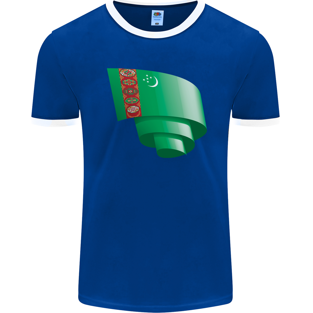 Embrace the glory of Turkmenistan and make a bold statement with every wear. Elevate your style game with the Curled Turkmenistan Flag The Turkmen Day Football Men's Ringer T-Shirt by FotL – a true emblem of style, patriotism, and sport combined in one unforgettable piece.