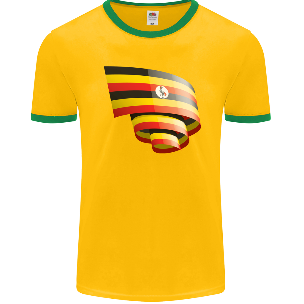 Whether you're cheering for your favourite team, enjoying a day out in the sun, or simply relaxing, the Curled Uganda Flag Ugandan Day Football Men's Ringer T-Shirt is the perfect choice. Elevate your casual look with a hint of culture and heritage, and make a statement wherever you go.