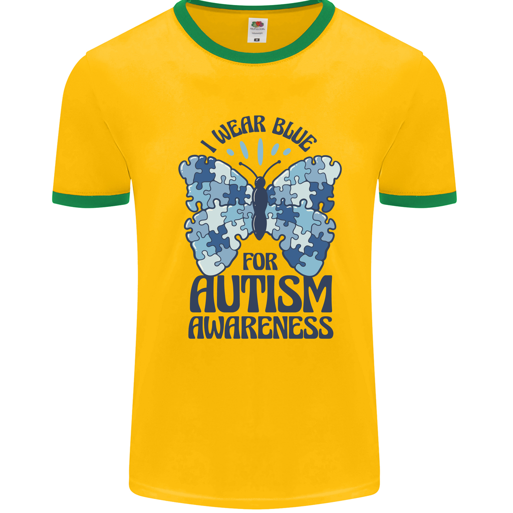 Perfect for casual outings, charity events, or simply spreading awareness, this t-shirt is a versatile addition to any wardrobe. Let your fashion make a statement and start meaningful conversations with our "I Wear Blue For Autism" Butterfly Autistic Men's Ringer T-Shirt.