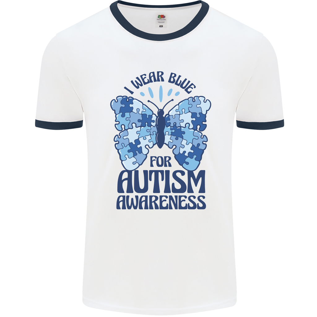 Express your support for Autism awareness with our vibrant "I Wear Blue For Autism" Butterfly Autistic Men's Ringer T-Shirt. This unique design not only raises awareness but also exudes style and personality.