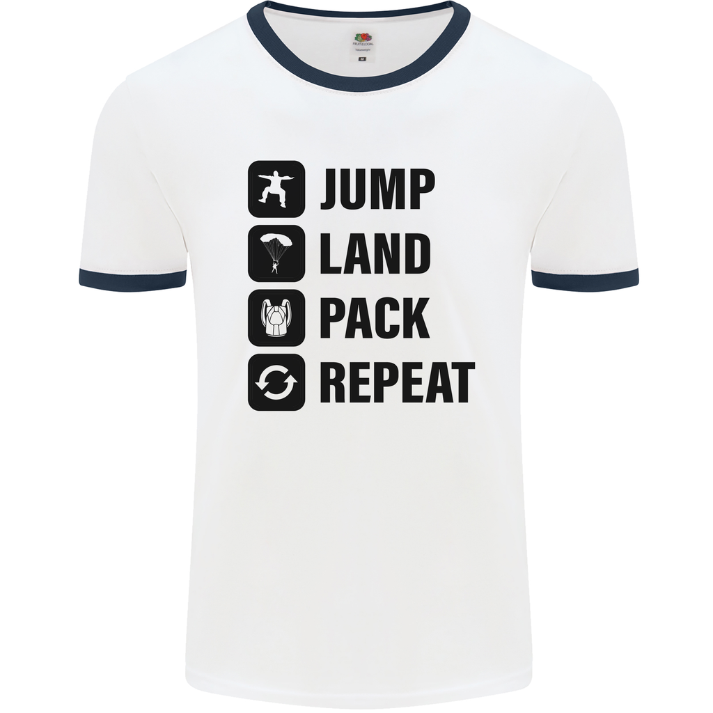 Experience the thrill of the skies with our Skydiving Jump Land Pack Funny Skydiver Men's Ringer T-Shirt. Crafted for adventure-seekers and adrenaline junkies, this t-shirt is more than just apparel; it's a statement of your passion for skydiving.