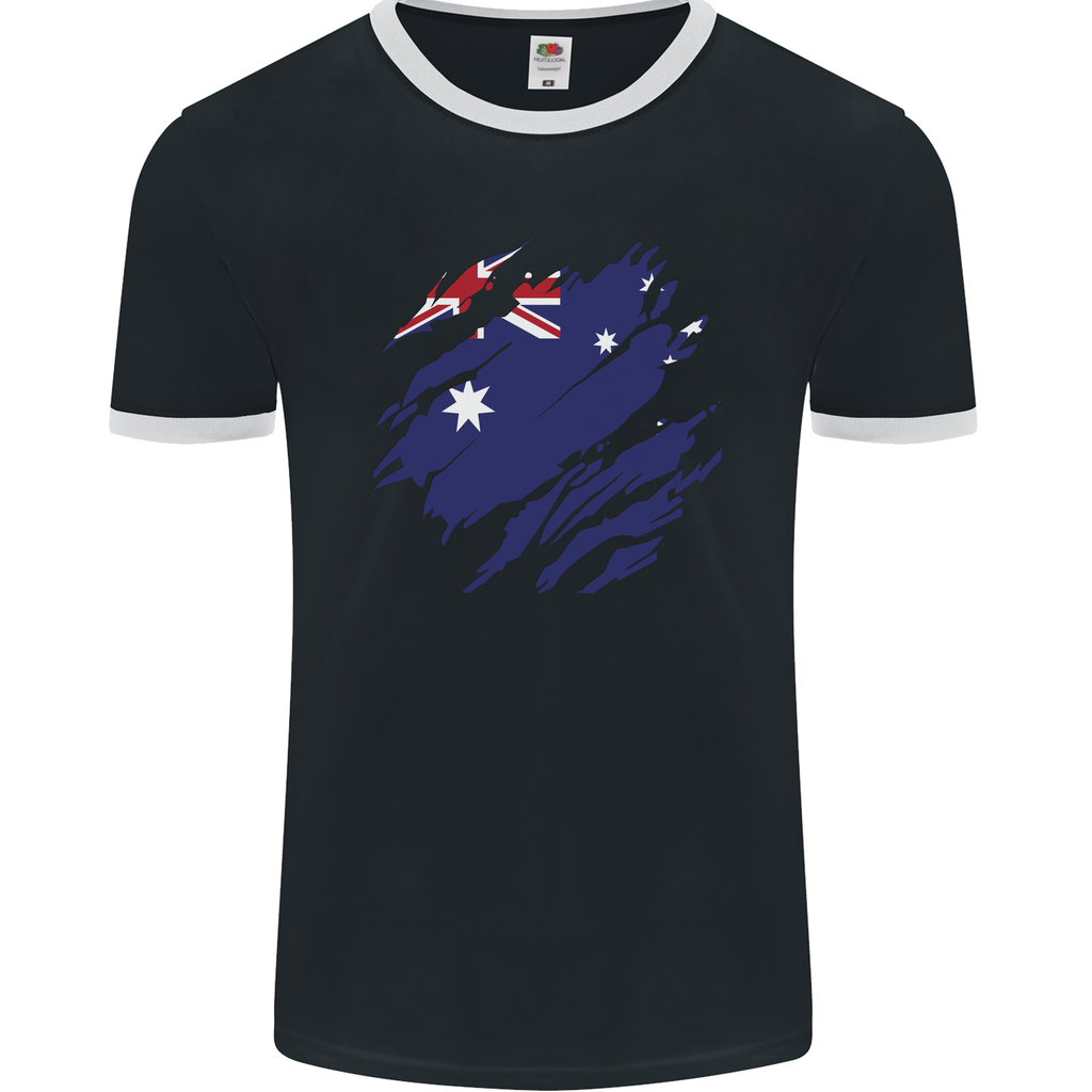Torn Australia Flag Australian Day Football Mens Ringer T-Shirt FotL
