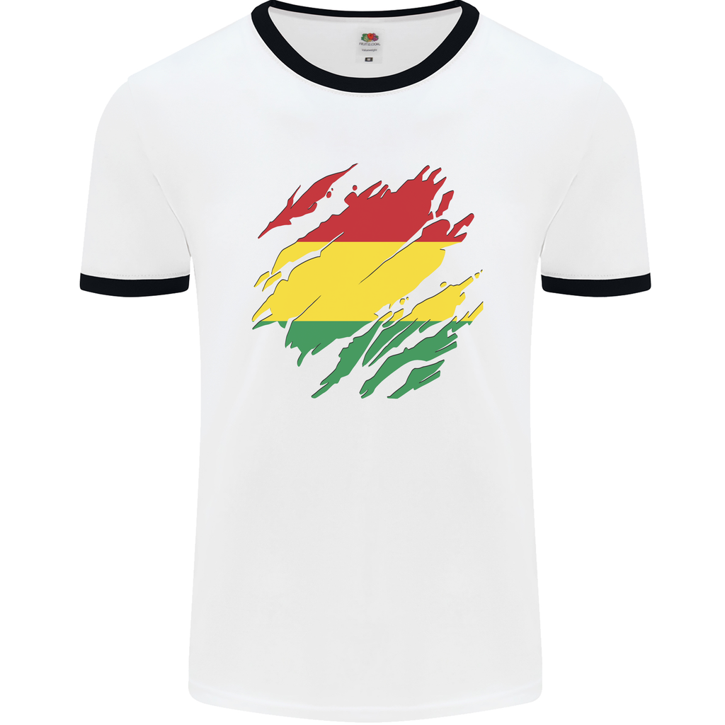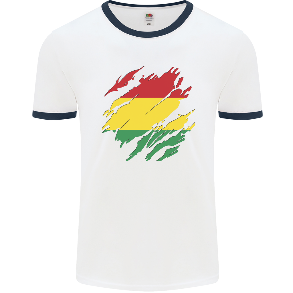 Get ready to show your support for Bolivia with this stylish and patriotic Torn Bolivia Flag Bolivian Day Football Mens Ringer T-Shirt. Perfect for football enthusiasts, this shirt is a must-have for any fan.