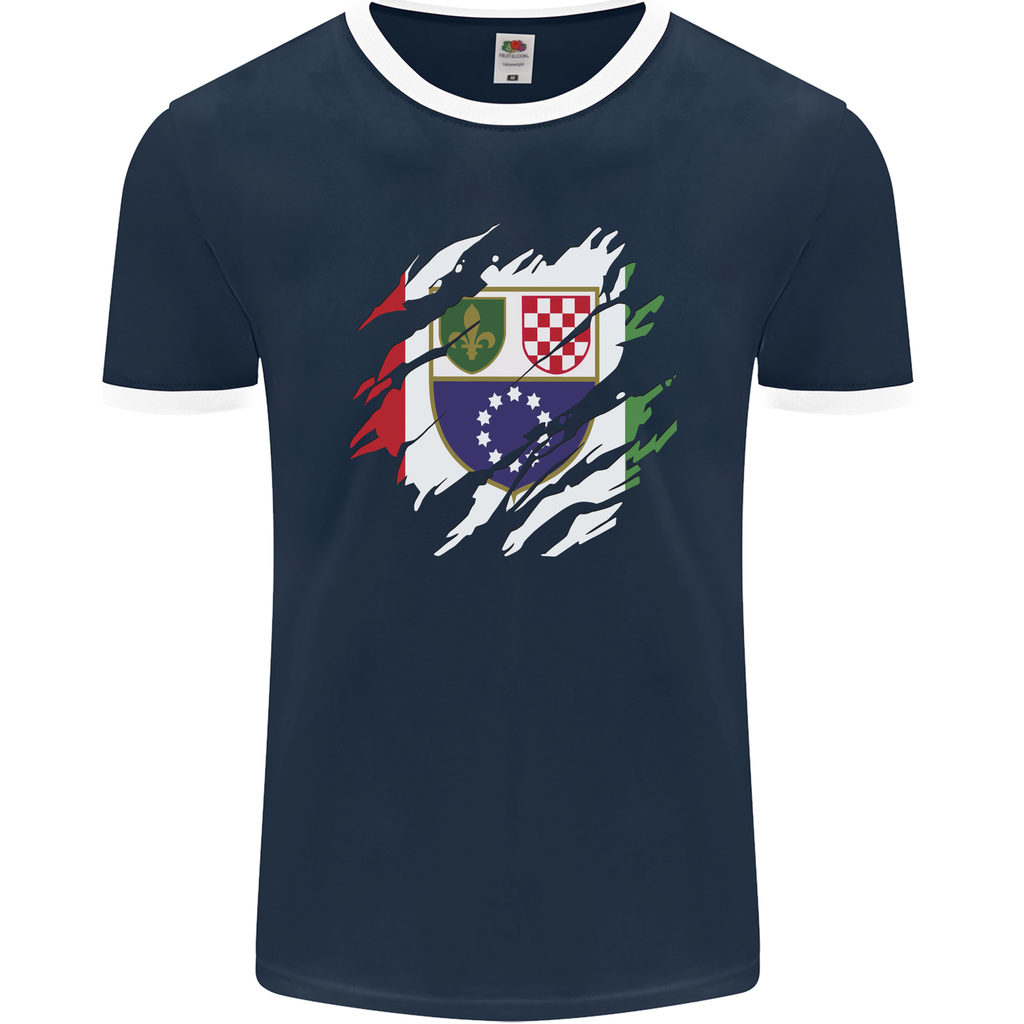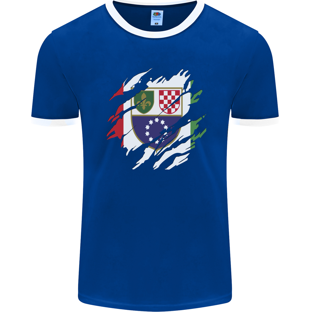 Step into the game with style and pride in this exclusive Torn Bosnia and Herzegovina Flag Day Football Men's Ringer T-Shirt by FotL. Crafted with passion, this premium shirt is a true representation of strength and unity.