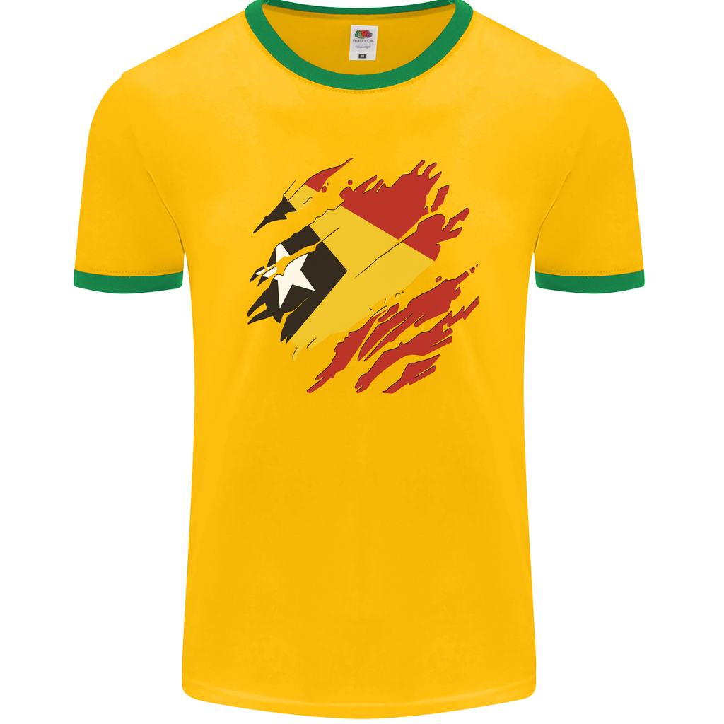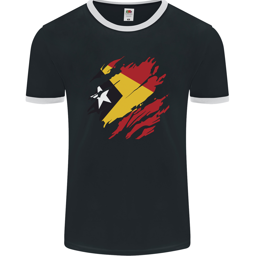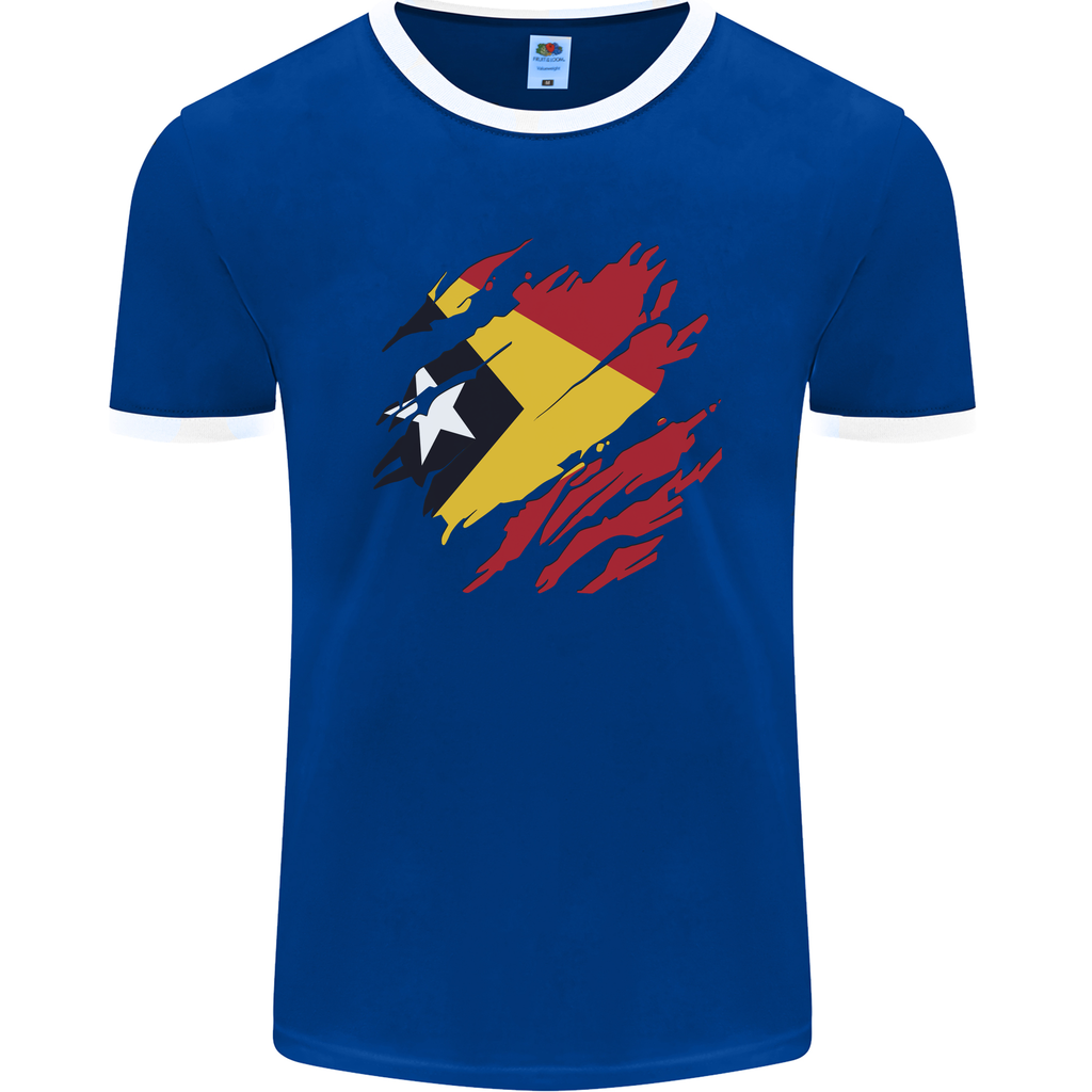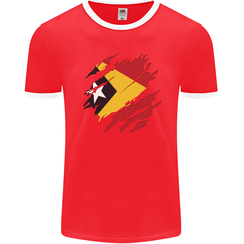 Whether you're attending a football match, hanging out with friends, or simply looking to elevate your casual wardrobe, this Torn East Timor Flag Day Football Mens Ringer T-Shirt is a versatile piece that adds a touch of flair to any outfit.