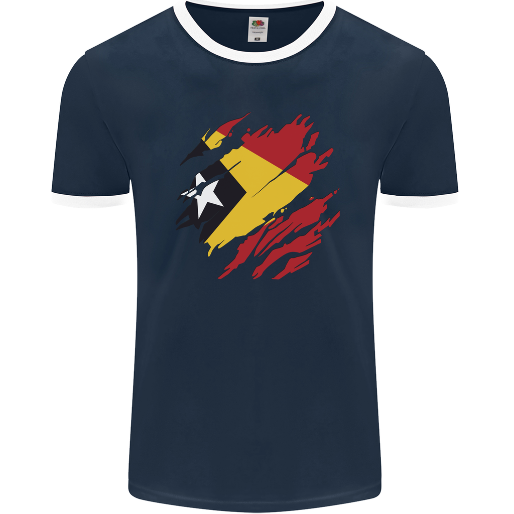 Stand out from the crowd and make a bold statement with the Torn East Timor Flag Day Football Mens Ringer T-Shirt. Perfect for gifting or treating yourself, this tee is a celebration of football, flags, and fashion all in one. Add it to your collection today and show off your style with pride.