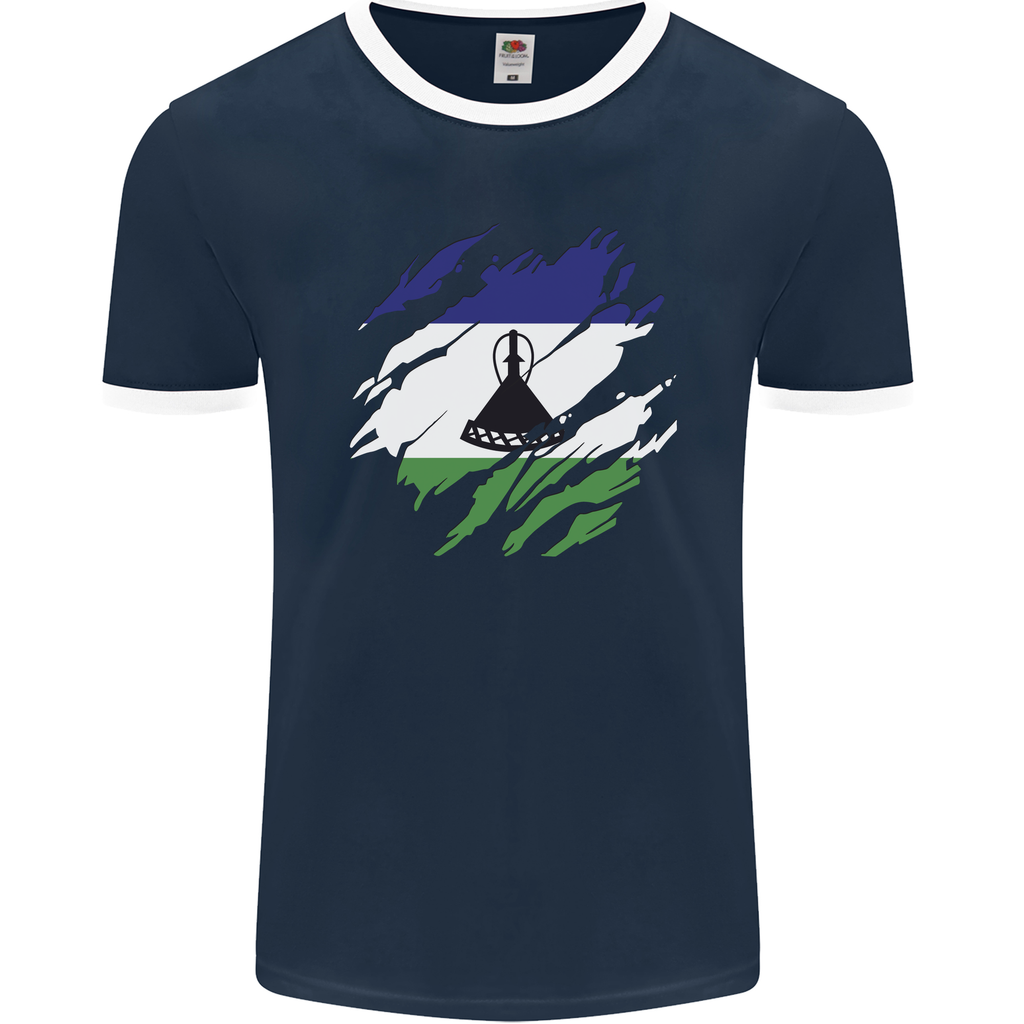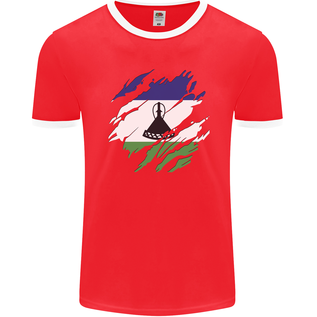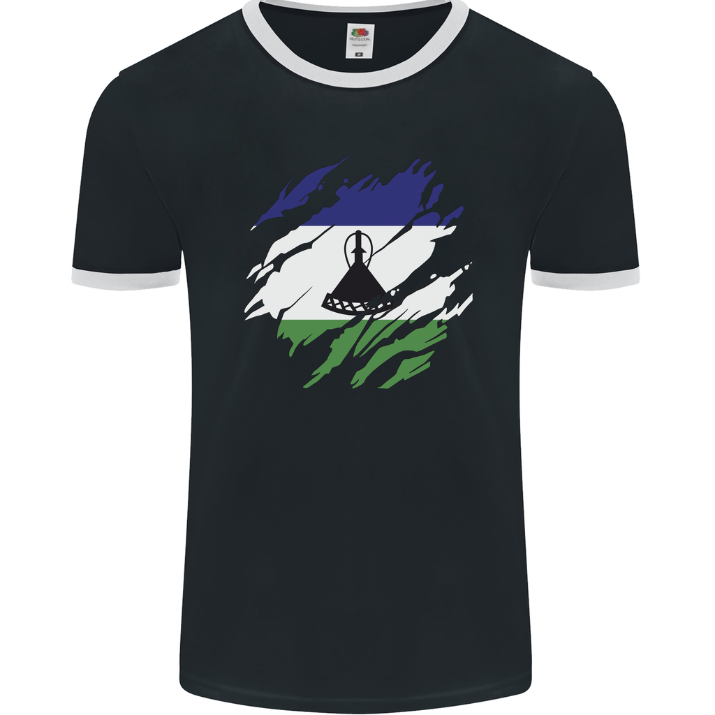 Introducing the Torn Lesotho Flag Basotho Day Football Mens Ringer T-Shirt, a distinctive and stylish addition to your wardrobe. Embrace your love for Lesotho with this unique design that effortlessly combines fashion and patriotism.