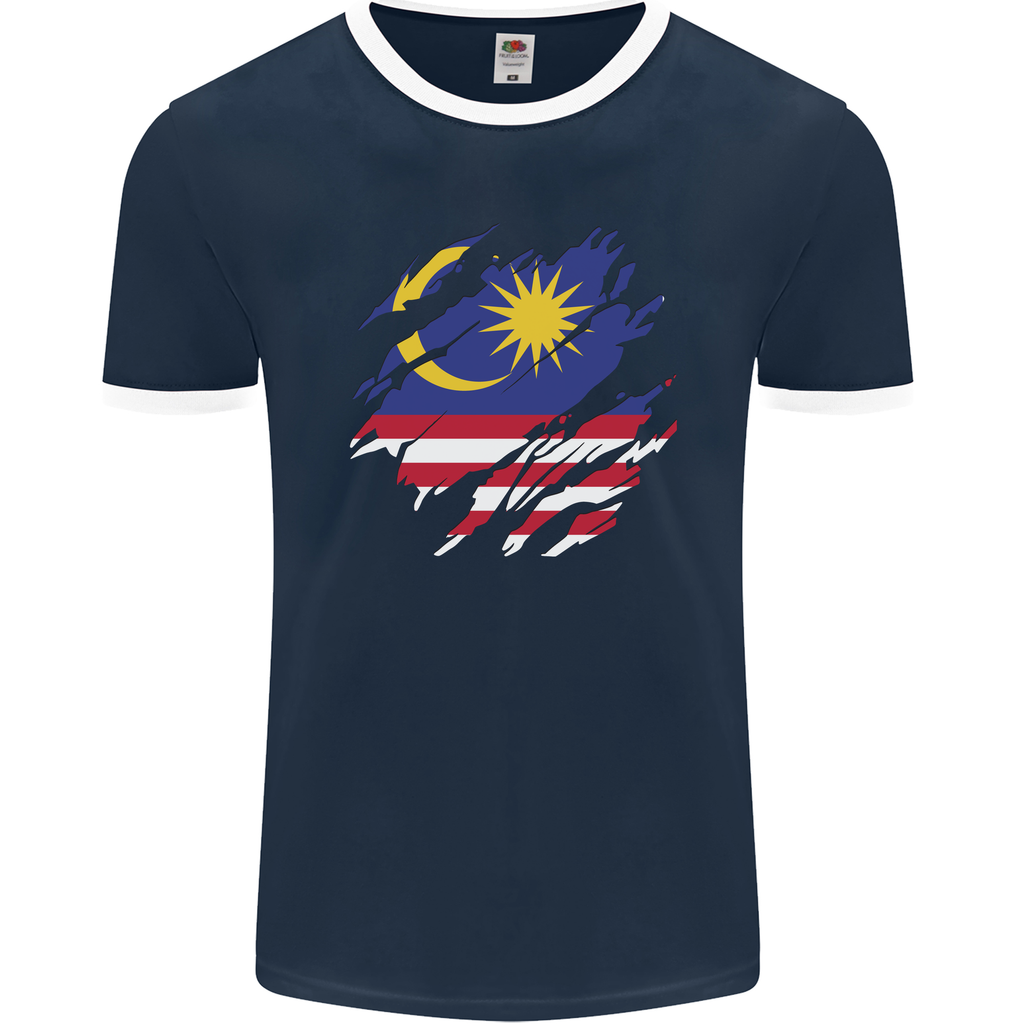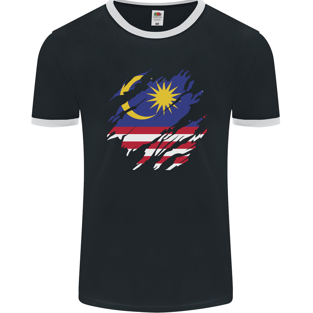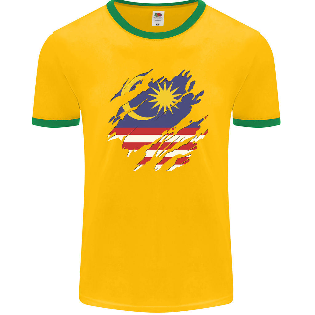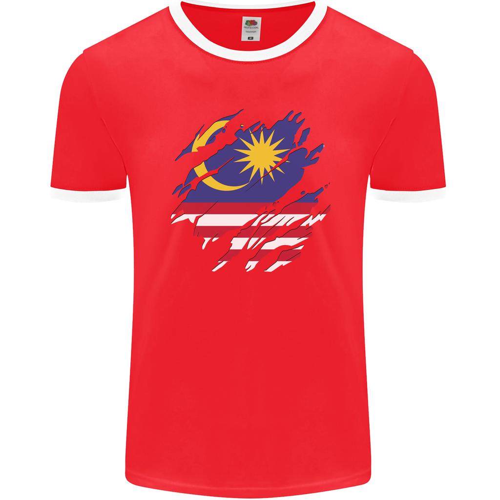 Welcome to our Torn Malaysia Flag Malaysian Day Football Men's Ringer T-Shirt by FotL. Show your pride for Malaysia by sporting this unique and stylish tee. Made for those who have a passion for football and a love for their country.