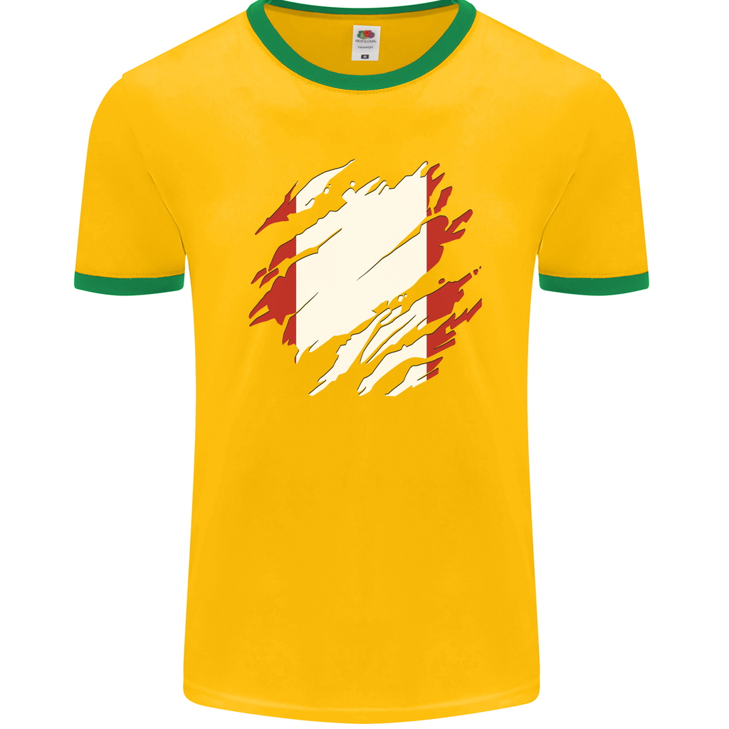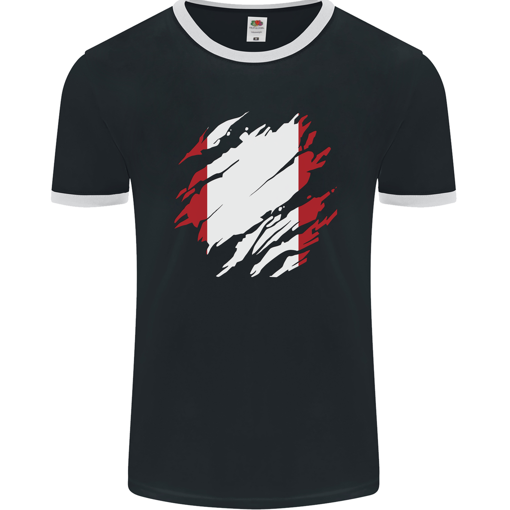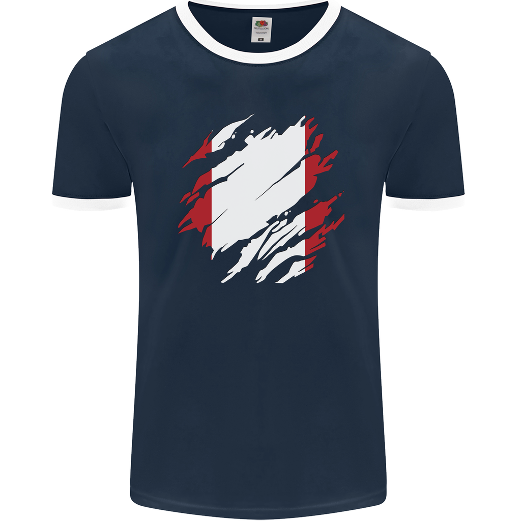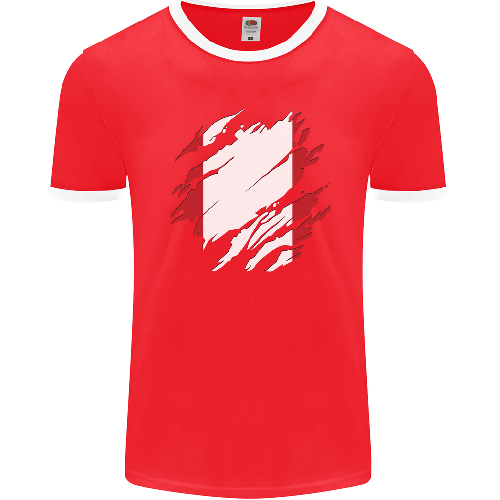 Featuring a striking torn Peru flag design, this ringer t-shirt is not only fashionable but also pays homage to the rich Peruvian heritage. The bold red and white colours make a powerful statement wherever you go, whether you're at a football match or simply out and about.