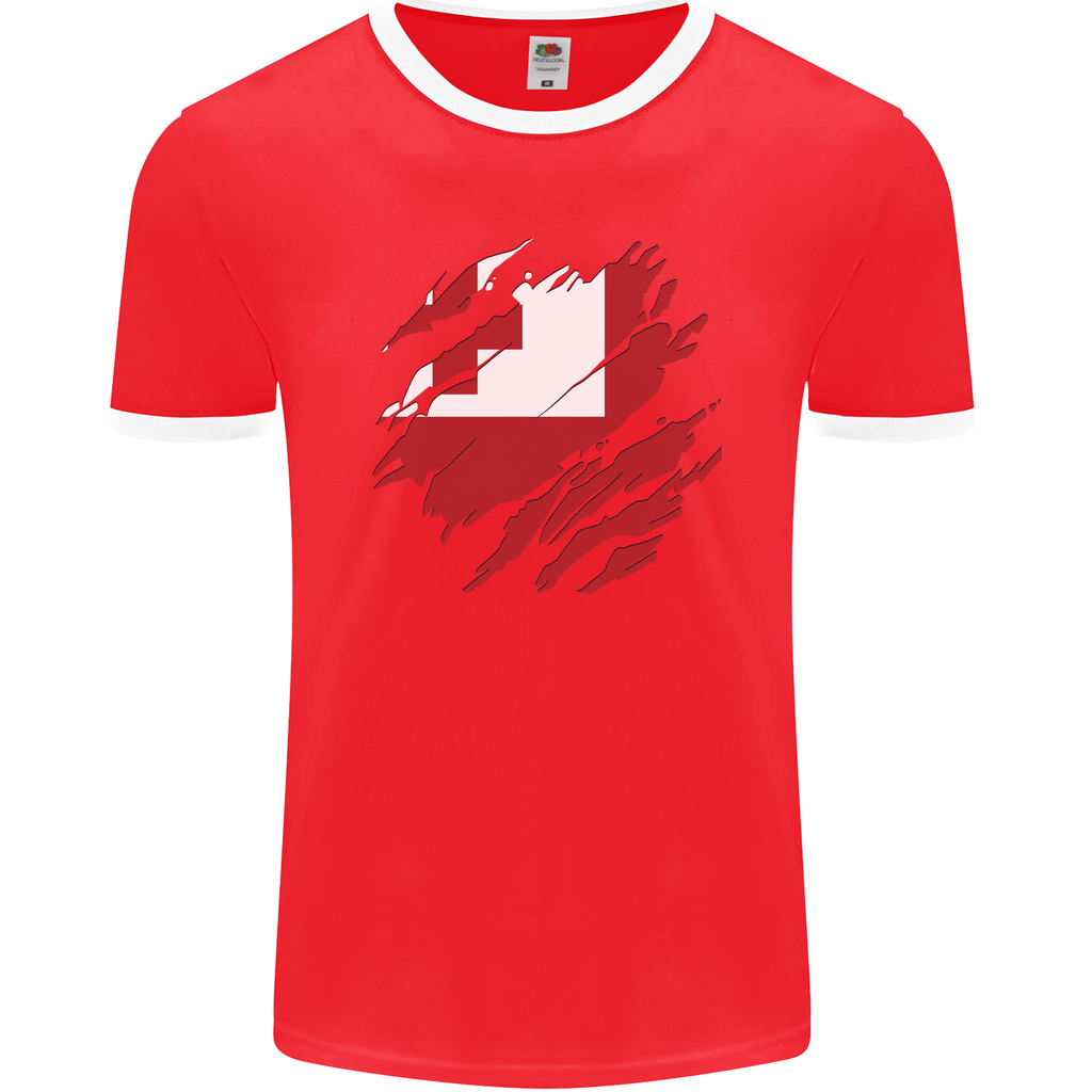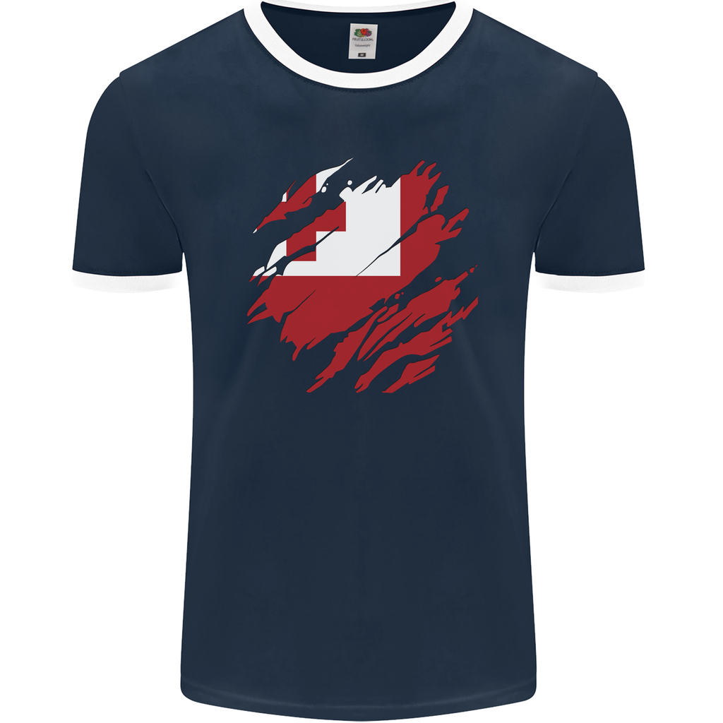 Welcome to the Torn Tongan Flag Tongan Day Football Mens Ringer T-shirt by FotL, a vibrant and patriotic piece that embodies Tongan pride in sports!
